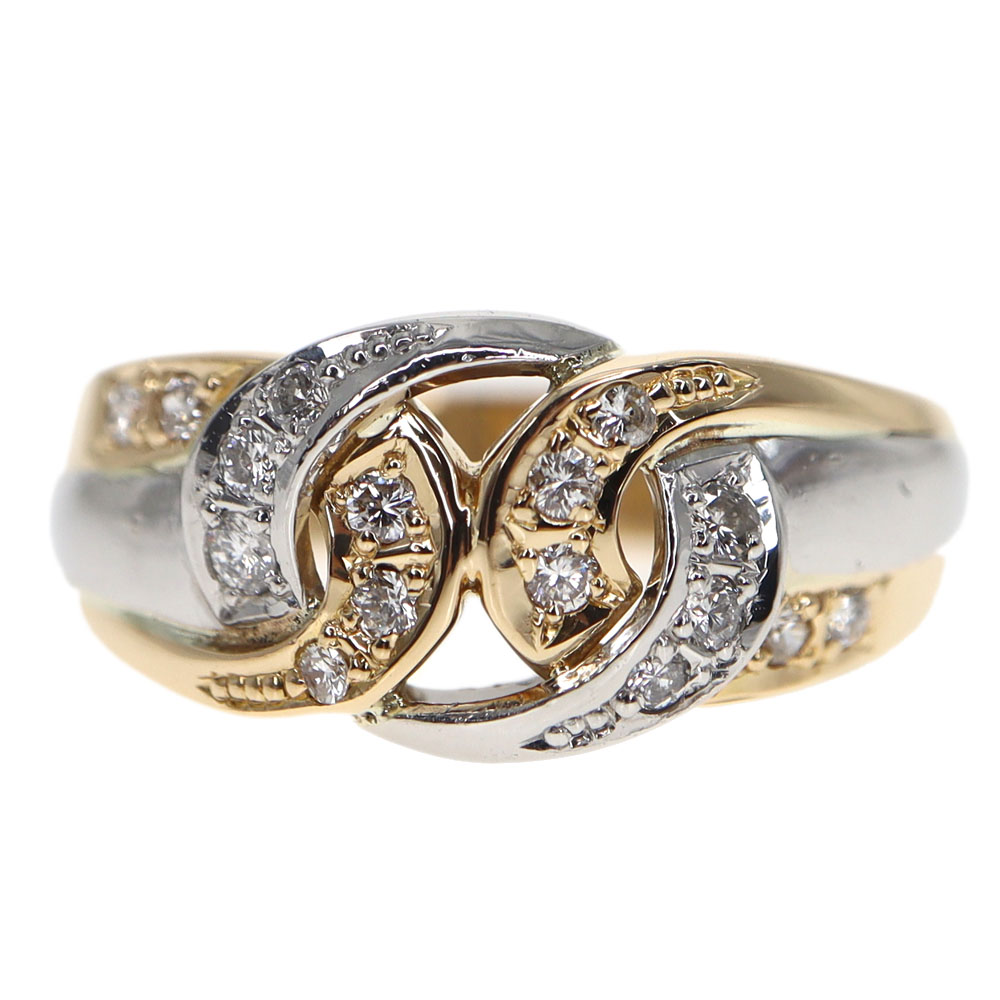 K18YG 18金 Pt900 プラチナ900 ダイヤモンド リング レディース ゴールド シルバー色 【中古】