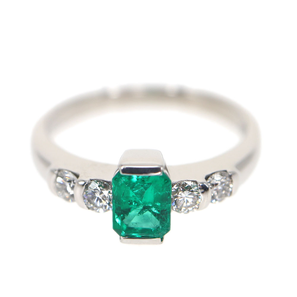 プラチナ900 Pt900 エメラルド ダイヤモンドリング 11号 レディース【中古】