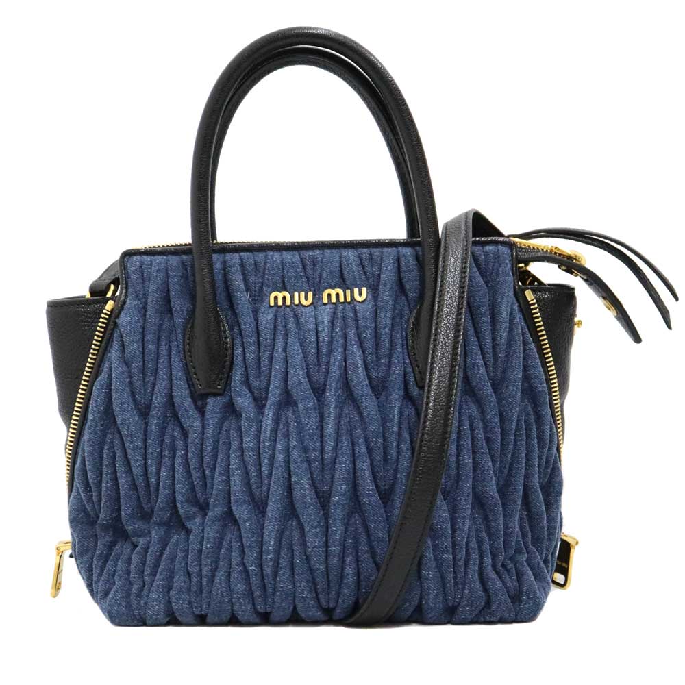 ミュウミュウ MiuMIu 5BA003 マドラス2WAYバッグ レディース デニム レザー ブルー系【中古】