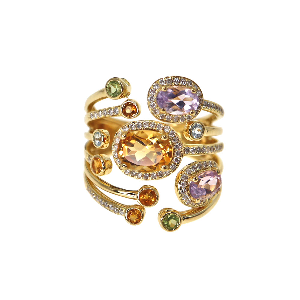 K18 18金 ダイヤモンド シトリン アクアマリン ペリドット ローズクォーツ リング レディース【中古】