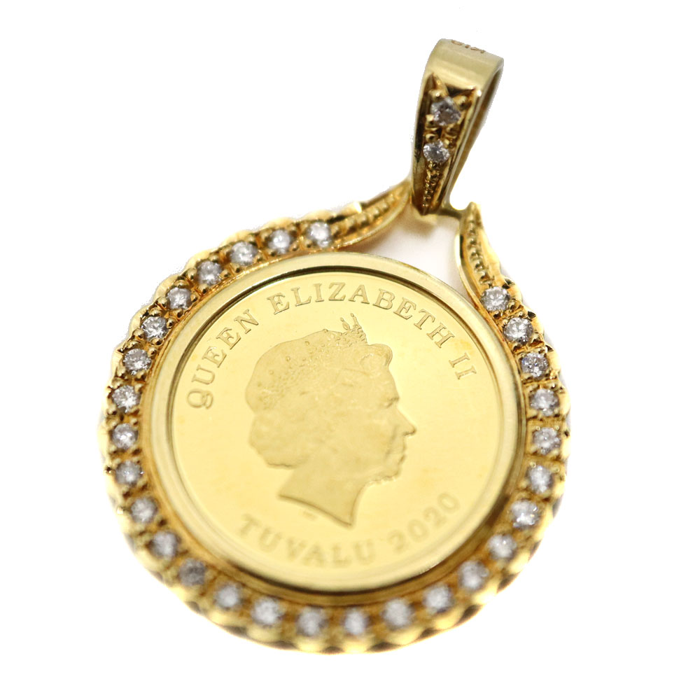 K24 24金 ツバルホール1/25oz コイントップ K18枠付 イエローゴールド ユニセックス アクセサリー【中古】