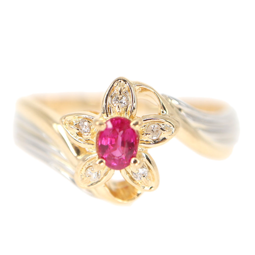 K18/Pt900 18金 プラチナ900 ルビー ダイヤモンドリング【中古】