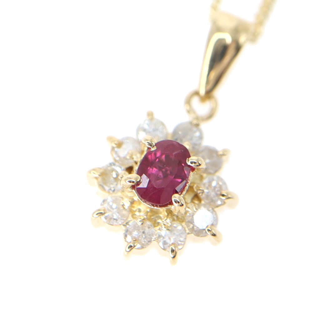 K18 18金 ルビー ダイヤモンド ネックレス【中古】