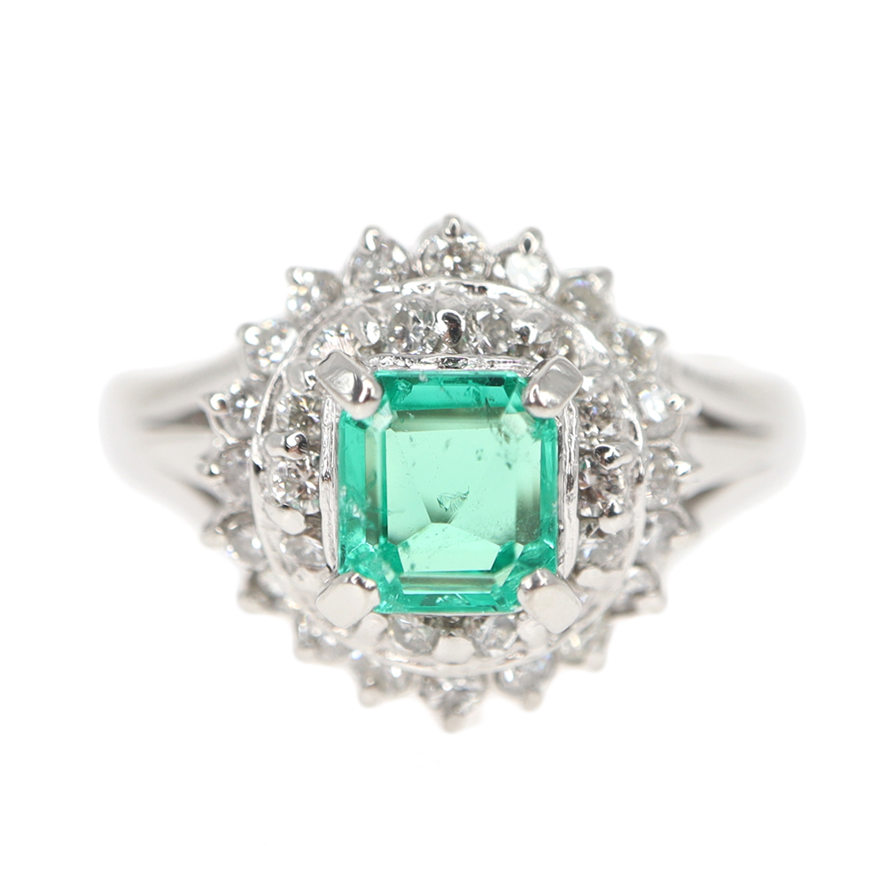 プラチナ850 Pt850 エメラルド ダイヤモンドリング【中古】