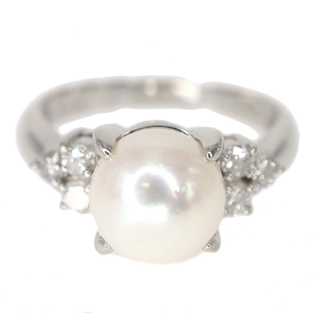 Pt900 プラチナ900 パール ダイヤモンドリング 【中古】