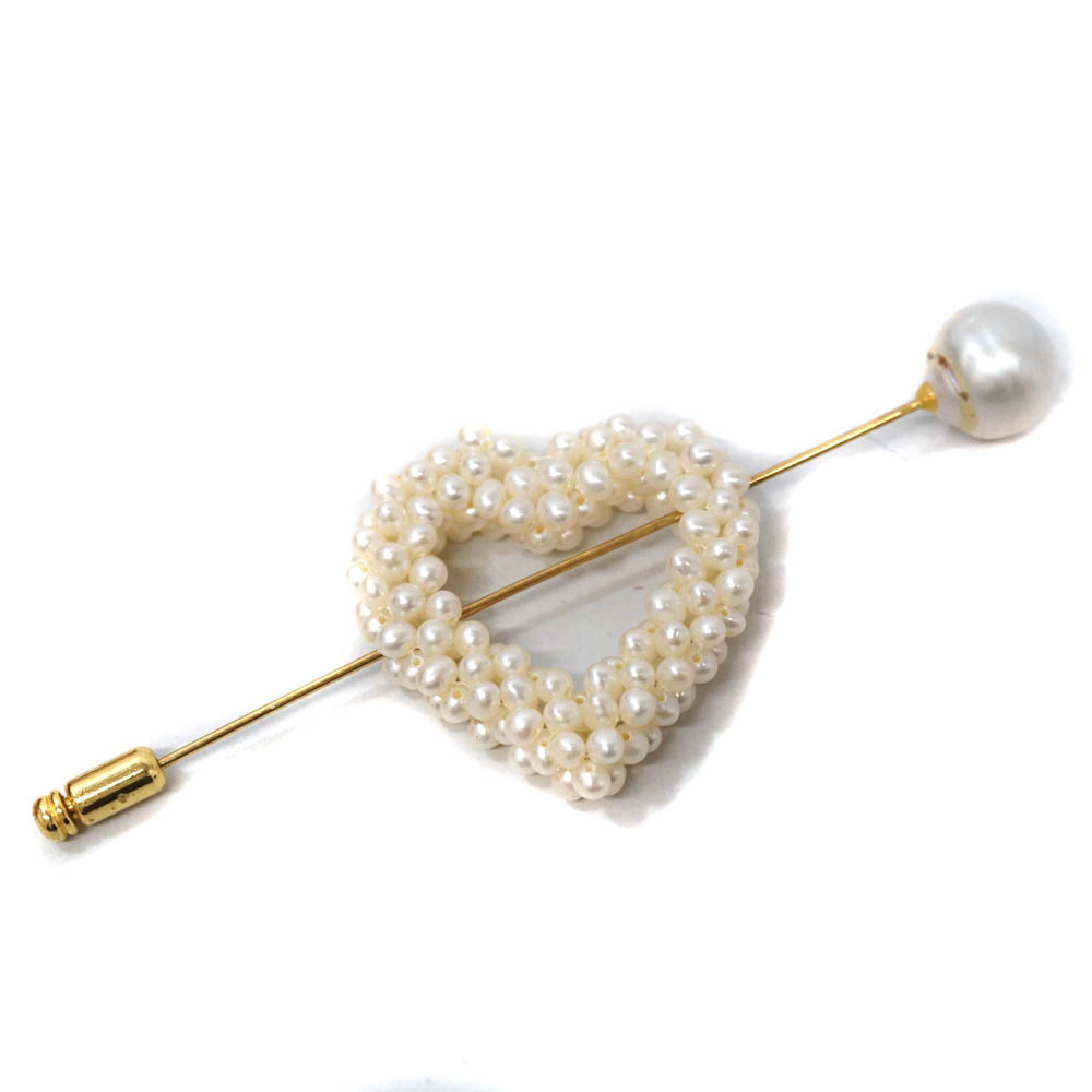 K18 ゴールド パール付き ハート ブローチ 【中古】
