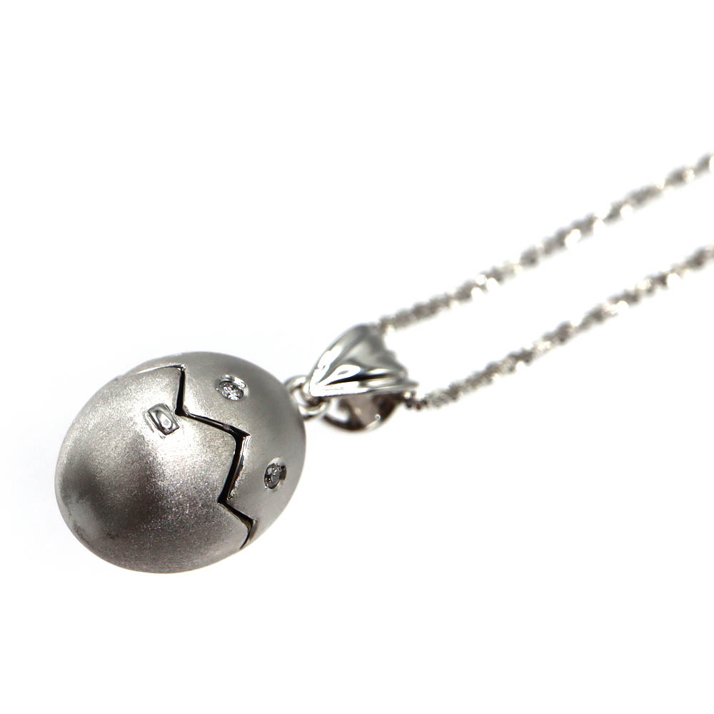 18金 ホワイトゴールド K18WG パール/D0.04ct タマゴトップ付ネックレス ジュエリー ダイヤモンド 【中古】