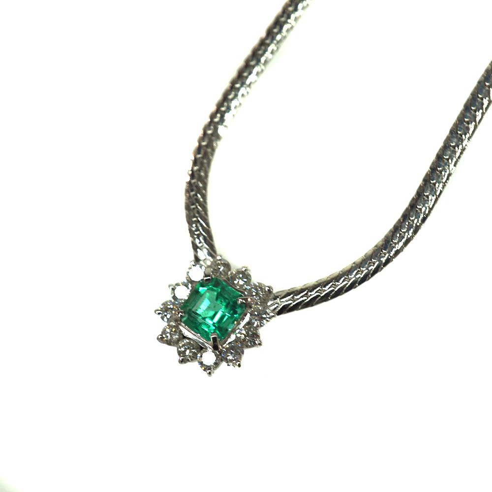 Pt850 プラチナ850 ダイヤモンド 0.79ct エメラルド1.01ctネックレス Pt900 プラチナ900【中古】
