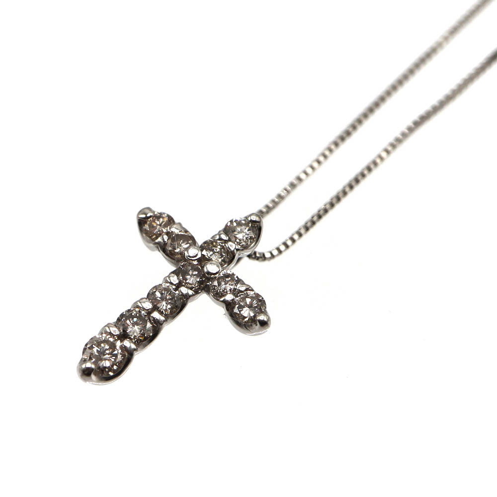 Pt850 プラチナ D0.50ctクロス ネックレス ダイヤモンド ジュエリー アクセサリー 【中古】
