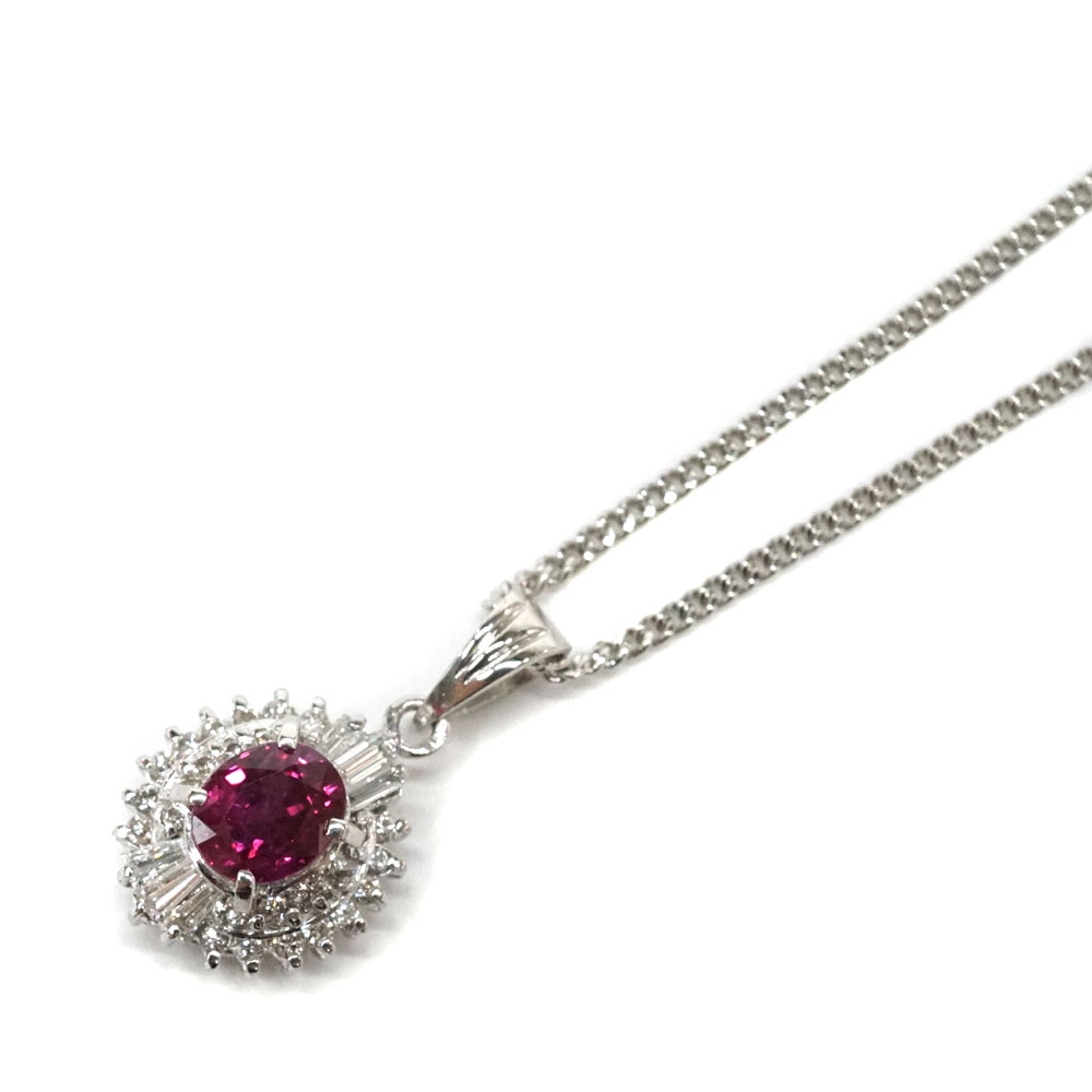 Pt850 プラチナ850 ダイヤモンド0.23ct ルビー0.79ct ネックレス ジュエリー アクセサリー レディース【中古】