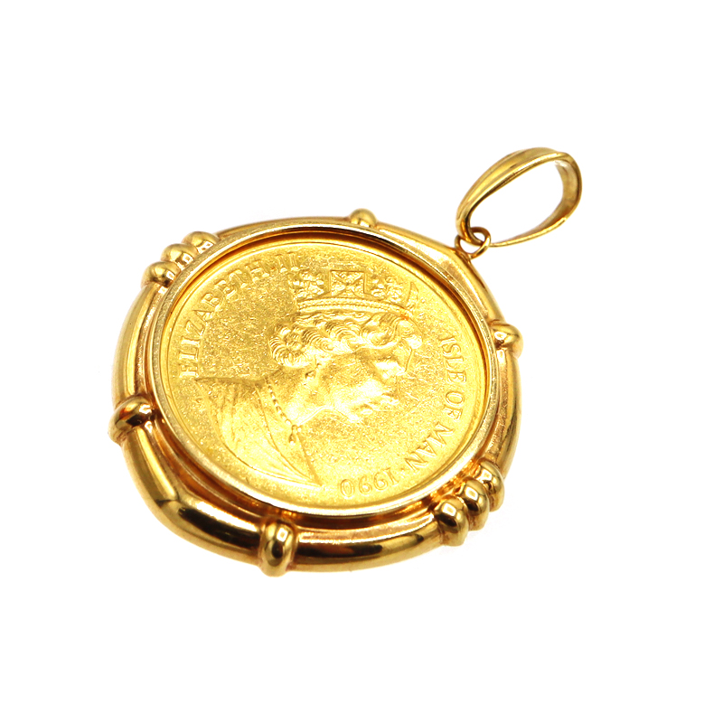24金 18金 K24 K18 K18枠マン島キャット1/5oz ペンダントトップ コイントップ ゴールド【中古】