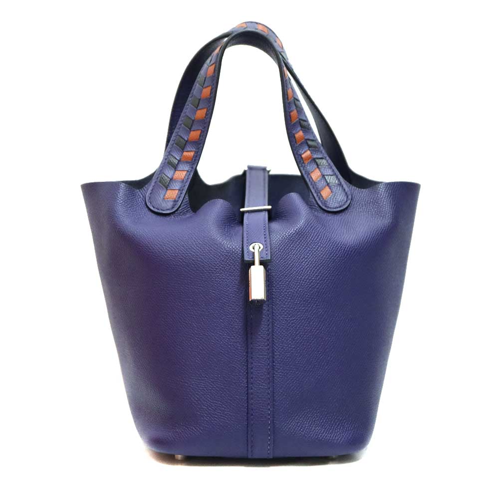 エルメス Hermes ピコタンロックPM トレサージュ ハンドバッグ ユニセックス ブルー系【中古】