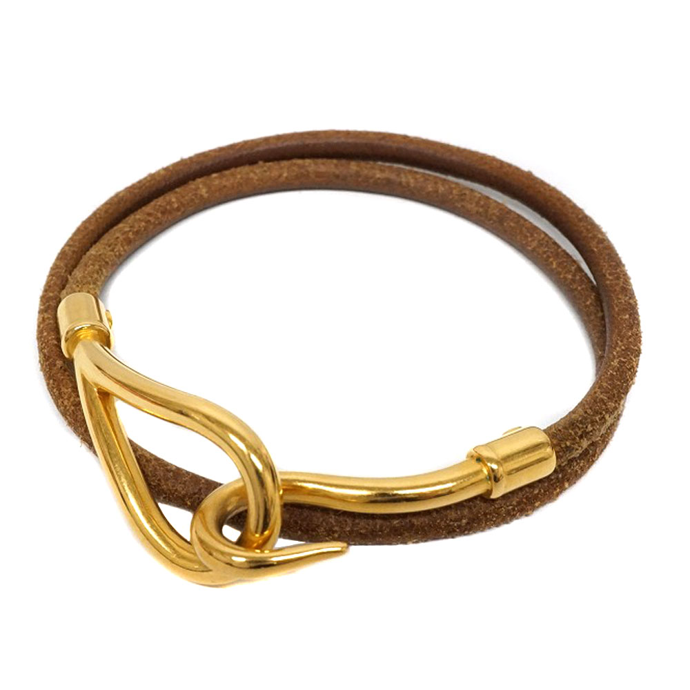エルメス Hermes ジャンボフックチョーカー 2連ブレスレット レザー ゴールド金具 【中古】