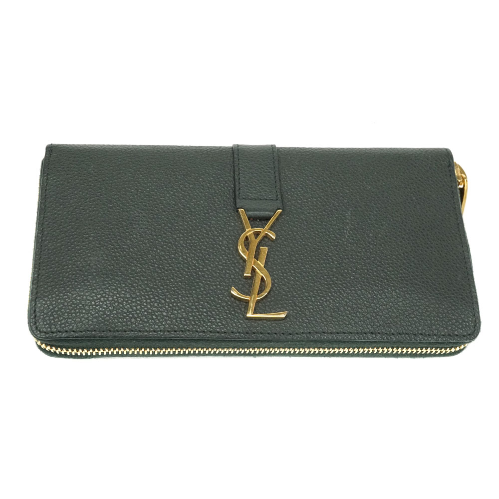 イヴサンローラン Saint laurent ラウンドファスナー長財布 カーキ【中古】