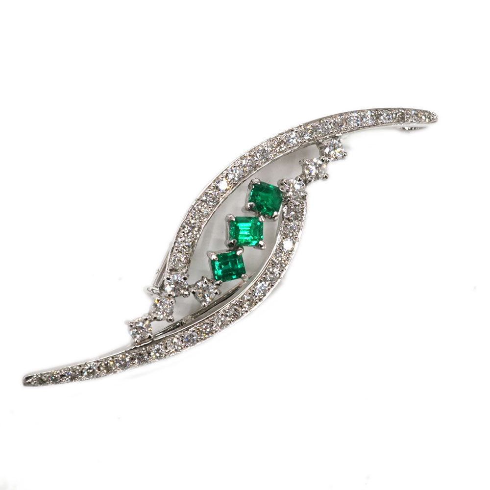 K18WG K14WG 18金 14金 ホワイトゴールド ブローチ エメラルド0.67ct ダイヤモンド1.20ct【中古】