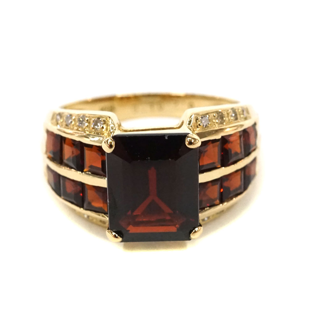 K18 18金 リング ガーネット6.20ct ダイヤモンド0.10ct 指輪【中古】