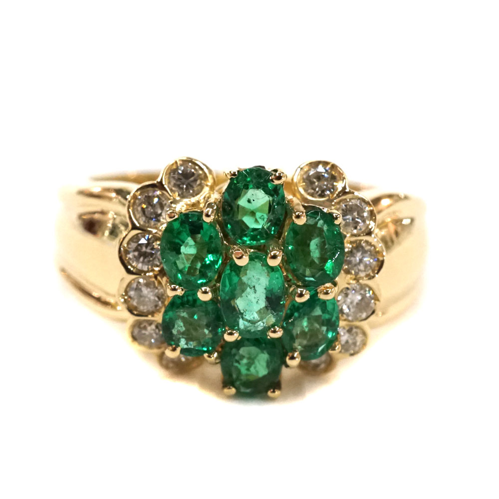 K18 18金 リング 指輪 エメラルド1.07ct ダイヤモンド0.29ct ゴールド【中古】
