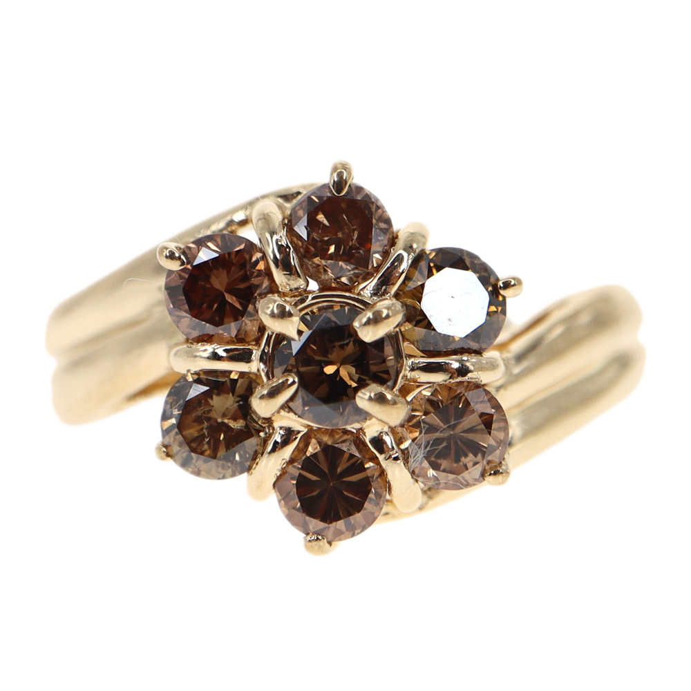 K18YG 18金 ダイヤモンド リング レディース ゴールド/ブラウンダイヤ【中古】