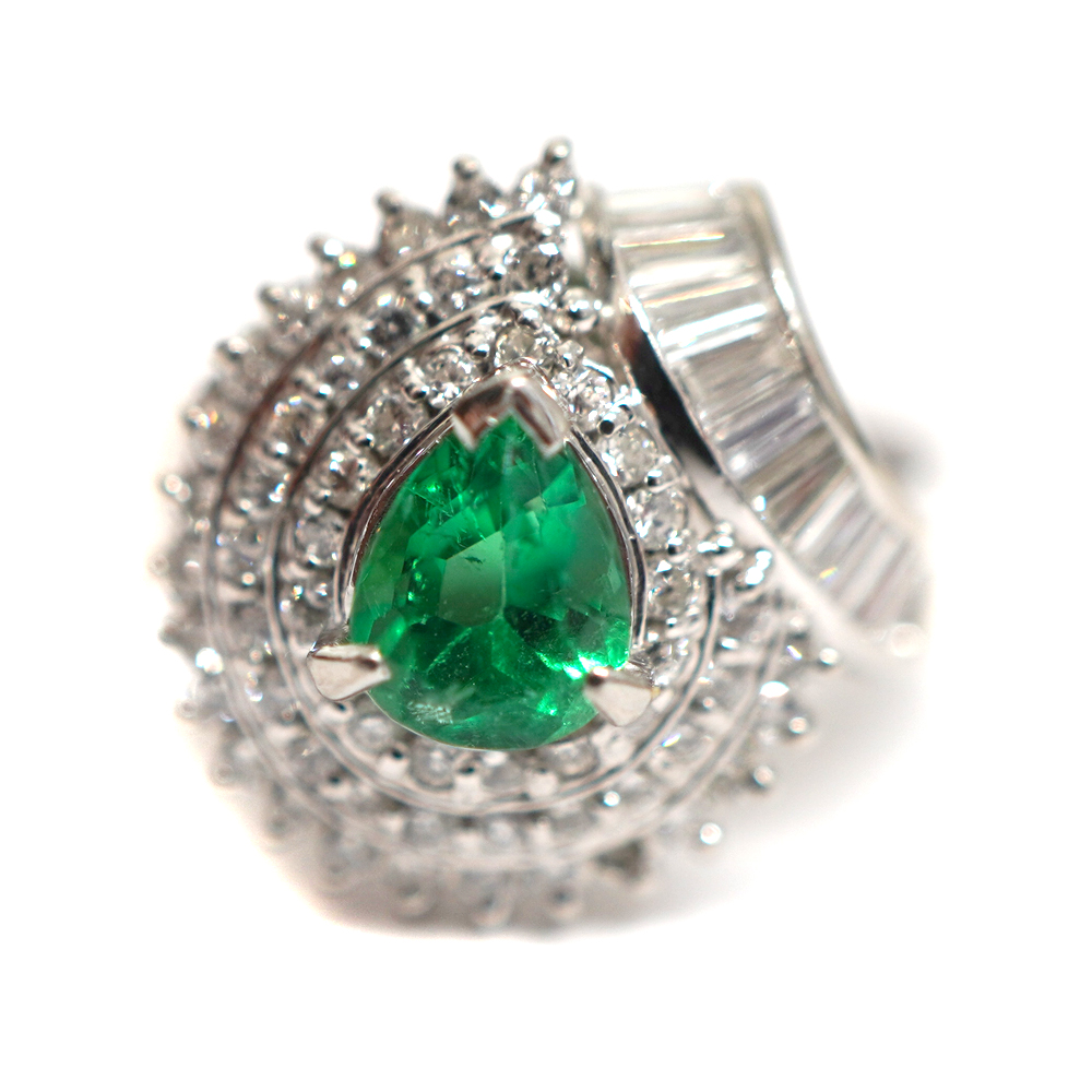 Pt900 プラチナ エメラルド0.62ct ダイヤモンド0.25/0.32ct リング 【中古】