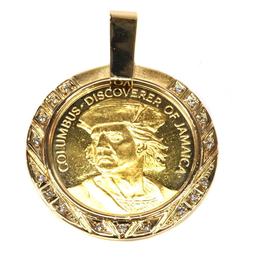 K21.6 K18 21.6金 18金 ダイヤモンド0.17ct ジャマイカ100ドル金貨トップ 【中古】
