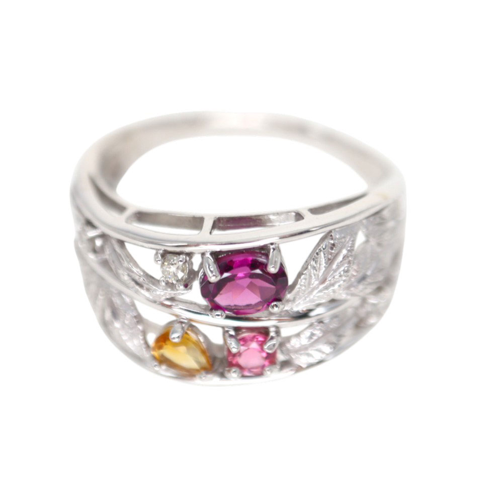 K18WG 18金ホワイトゴールド ガーネットリング 18.5号 レディース【中古】