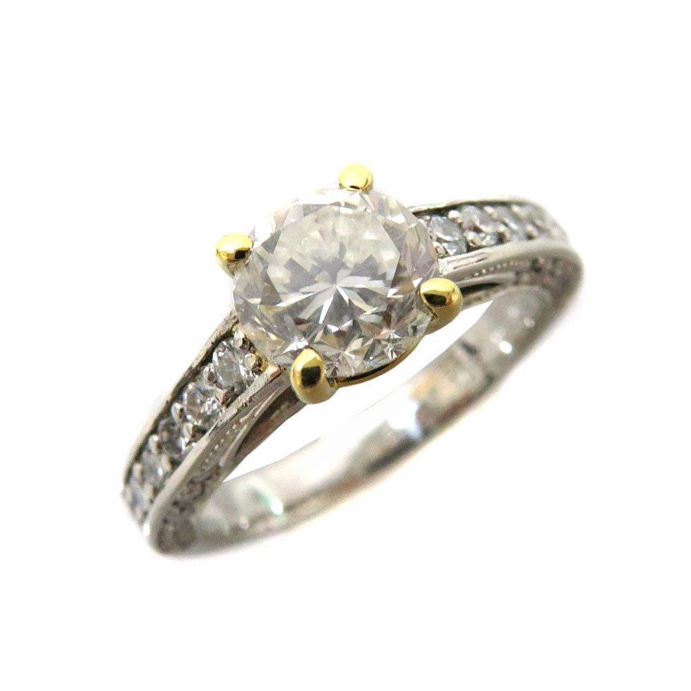 K18 Pt900 ゴールド プラチナ ダイヤモンド リング レディース ジュエリー アクセサリー 【中古】