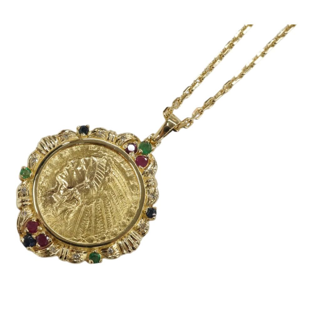 K21 K18 18枠インディアン5ドルコイン付きネックレス アクセサリー【中古】