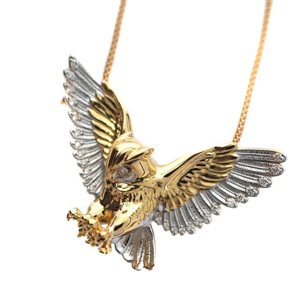 K18 18金 フクロウトップ付ネックレス ダイヤモンド0.30ct ブローチ レディース【中古】