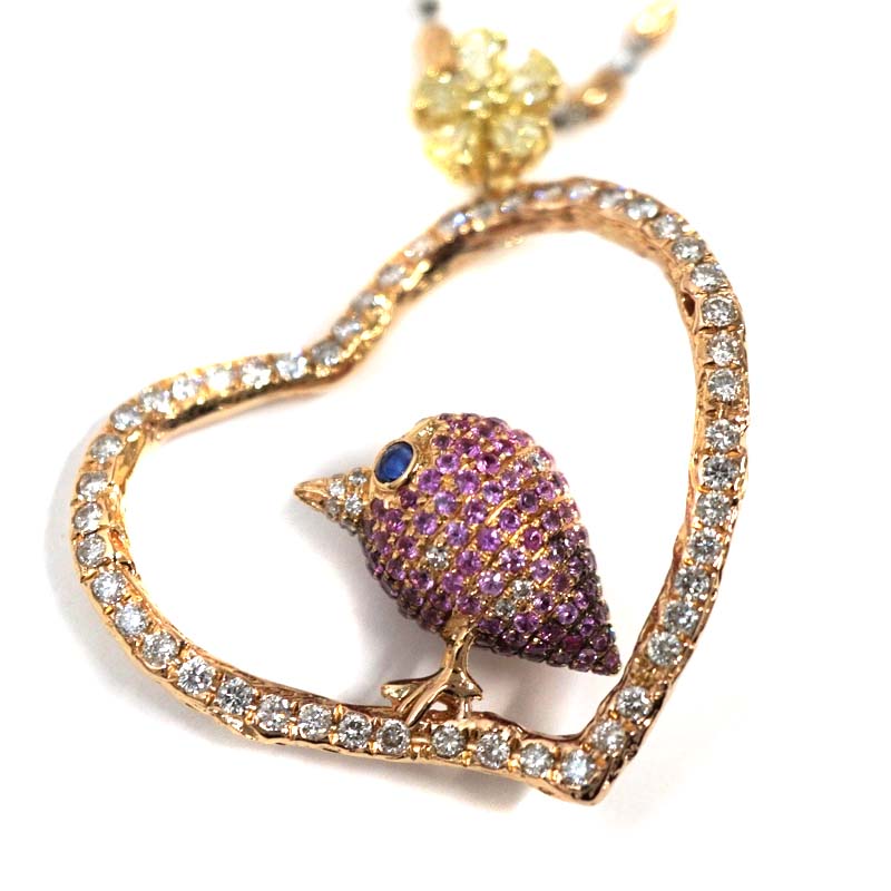 K18 PS1.05 D1.07ct ハートネックレス レディース ジュエリー アクセサリー 約45.0㎝ 約14.2g 【中古】