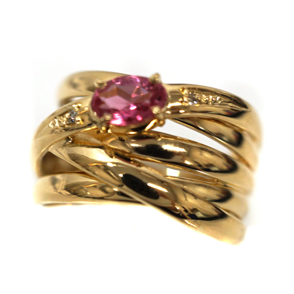 K18 D0.01ct ピンクトルマリン ダイヤモンドリング レディース ジュエリー アクセサリー 【中古】