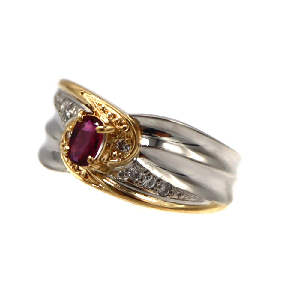K18 Pt900 ルビー0.28ct ダイヤモンド0.08ct リング 指輪 イエローゴールド プラチナ レディース ジュエリー【中古】