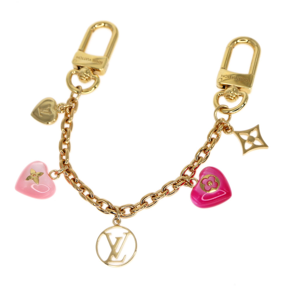 ルイヴィトン Louis vuitton M01000 ビジューサックLVチェーン ゴールド×ピンク ハート バッグチャーム レディース【中古】