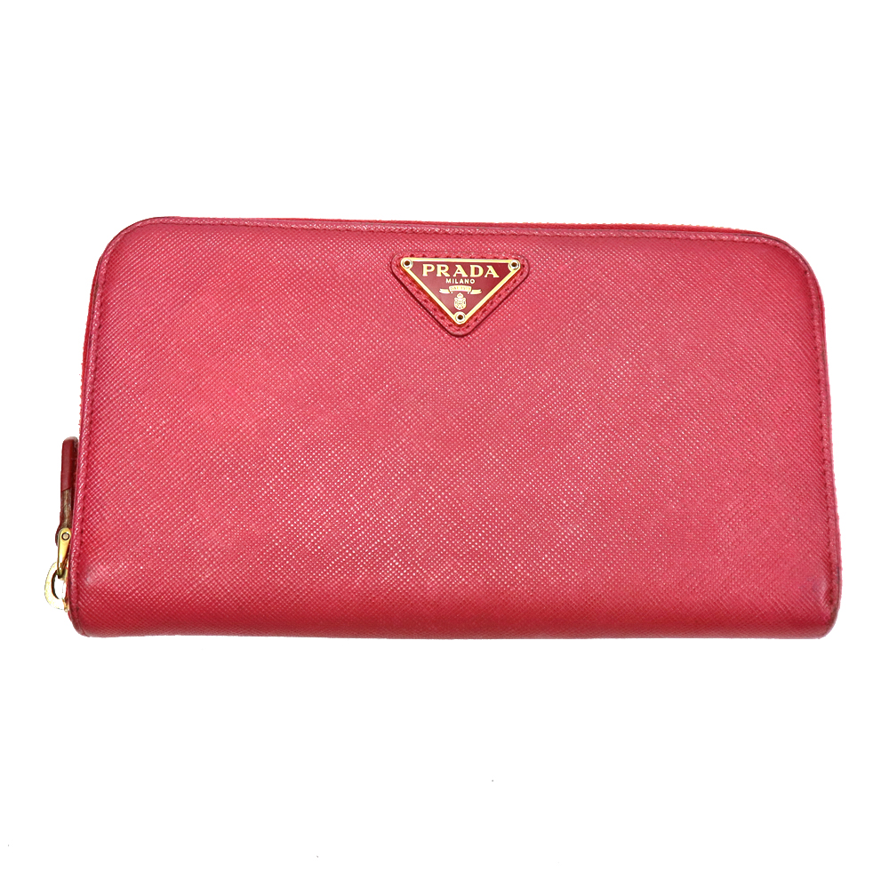 PRADA プラダ 1M0506 ラウンドファスナー長財布 レディース サフィアーノレザー ピンク【中古】