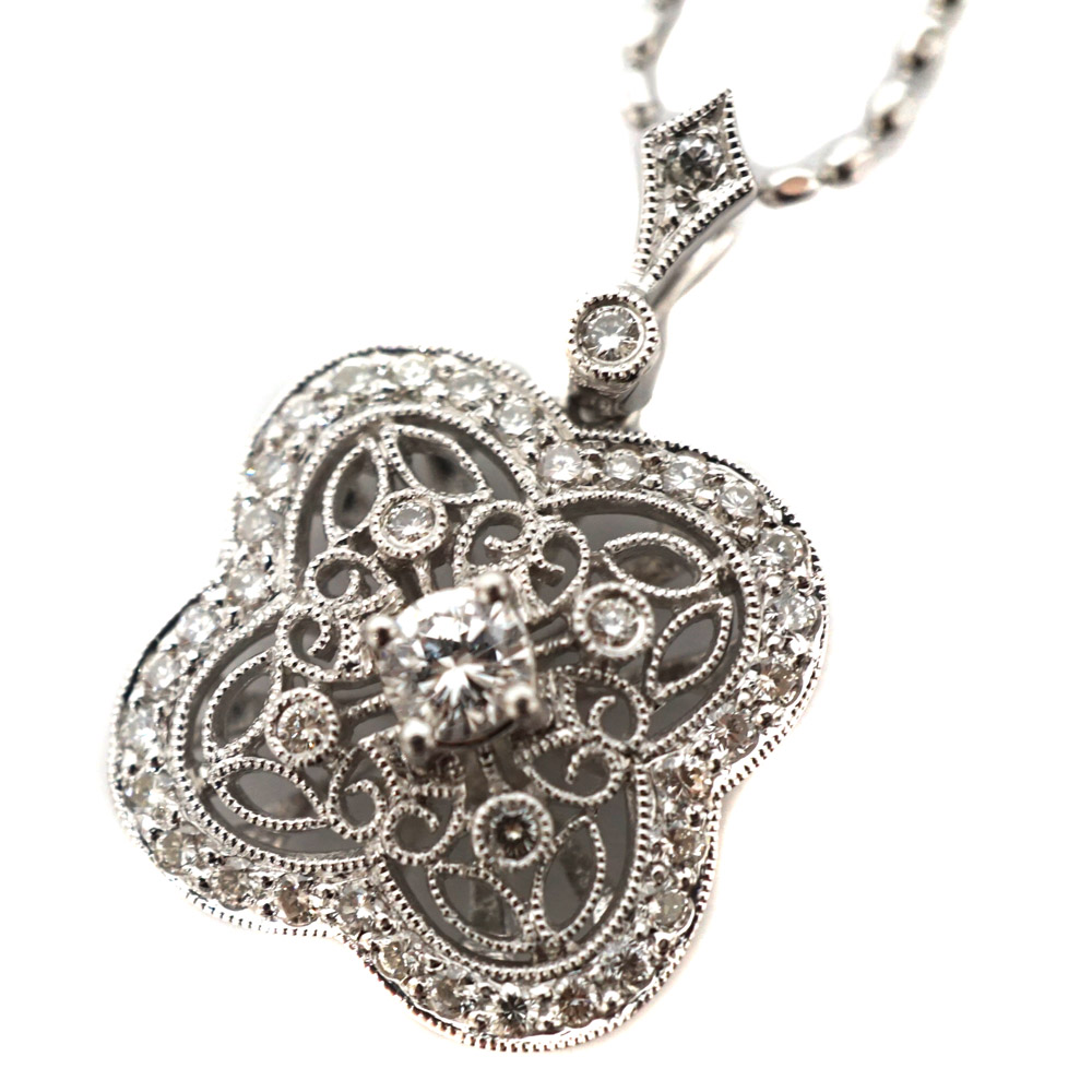 K18WG ホワイトゴールド D0.51/D0.22ct ダイヤモンド ネックレス ジュエリー アクセサリー 【中古】