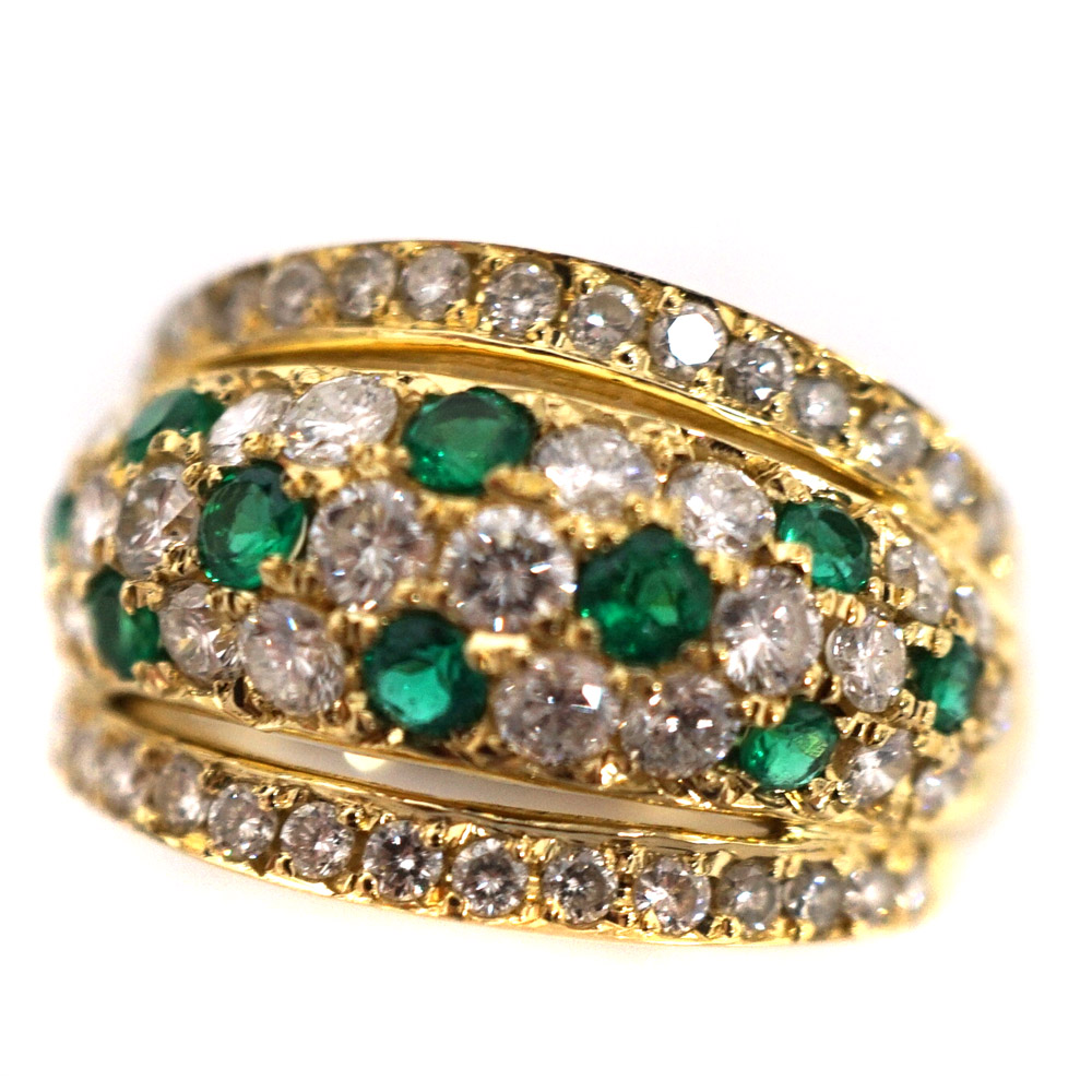 K18 ゴールド E0.36/D1.20ctリング エメラルド ダイヤモンド ジュエリー【中古】