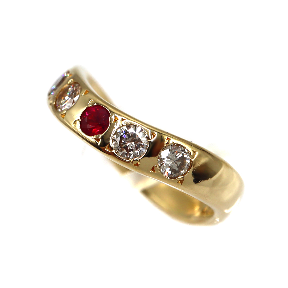 K18 18金 R0.12ct D0.48ct ルビー ダイヤモンド リング 指輪 ジュエリー レディース【中古】