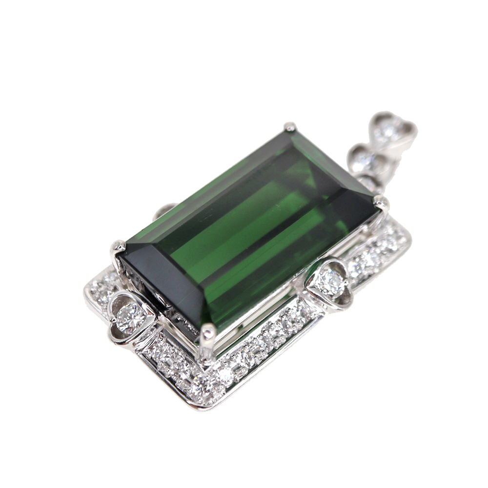 Pt900 プラチナ900 グリーントルマリン ダイヤモンド トップ レディース シルバー系 グリーン系【中古】