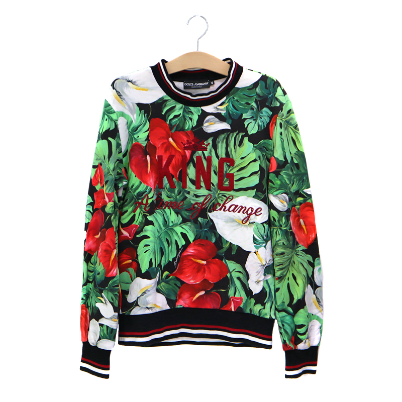 ドルチェアンドガッバーナ Dolce&Gabbana G90W6Z/G7SJK KING刺繍フラワースウェット グリーン レッド ホワイト アウター メンズ【中古】
