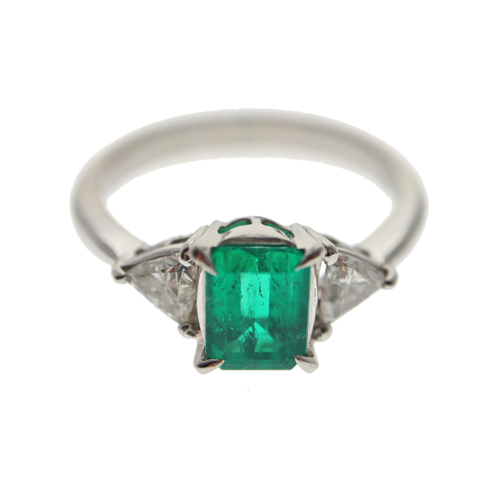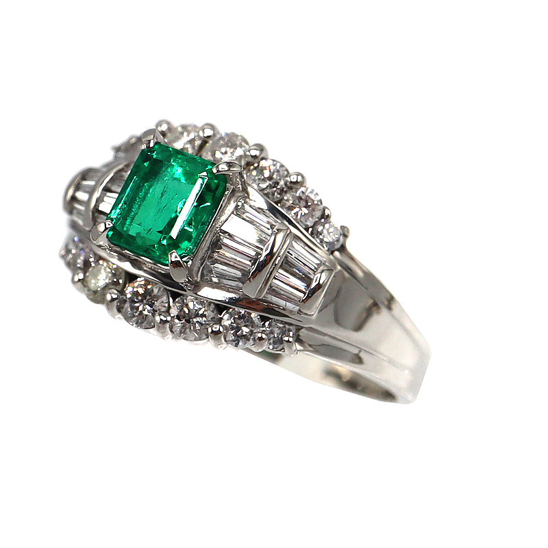 Pt900 プラチナ E0.65/D0.76ctリング 指輪 エメラルド ダイヤモンド レディース【中古】