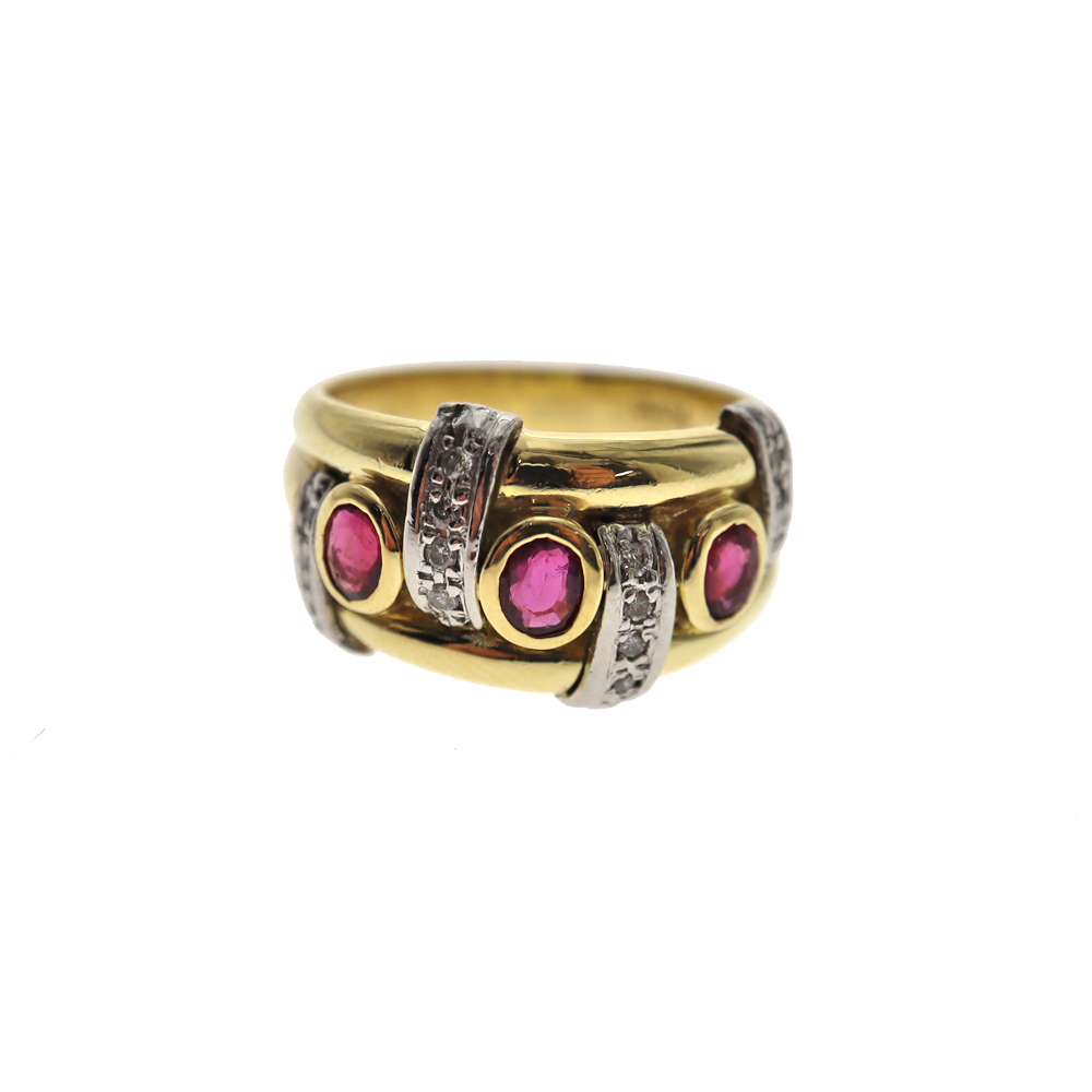 K18 Pt900 18金 プラチナ900 ルビー ダイヤモンド リング レディース 12号【中古】