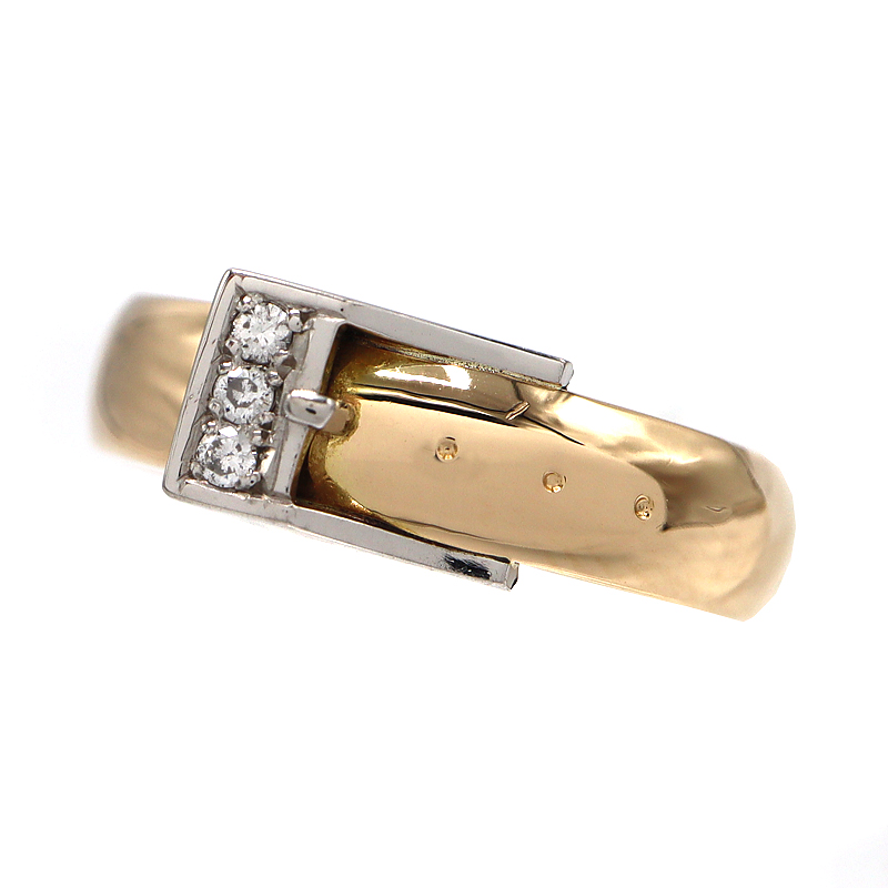 K18 Pt900 D0.036ctベルトモチーフリング 指輪 イエローゴールド プラチナ ダイヤモンド レディース【中古】