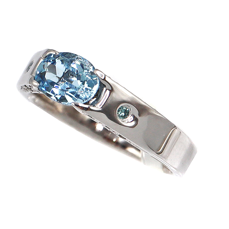 ホワイトゴールド K18WG アクアマリン0.760/ダイヤモンド0.16ctリング 金 ジュエリー レディース【中古】