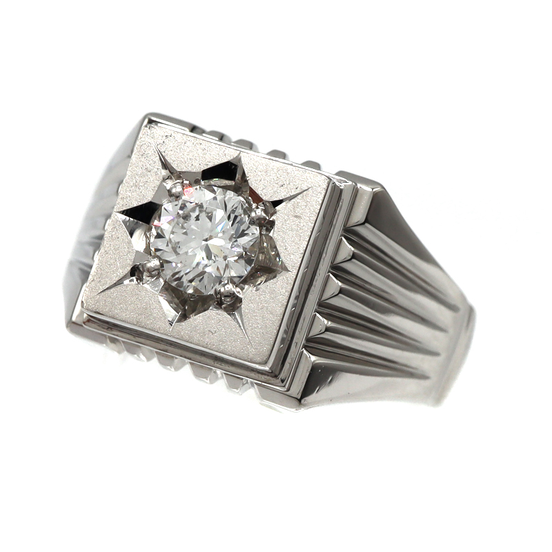 プラチナ900 Pt900 D0.515ct印台リング プラチナ ダイヤモンド 指輪 メンズ【中古】