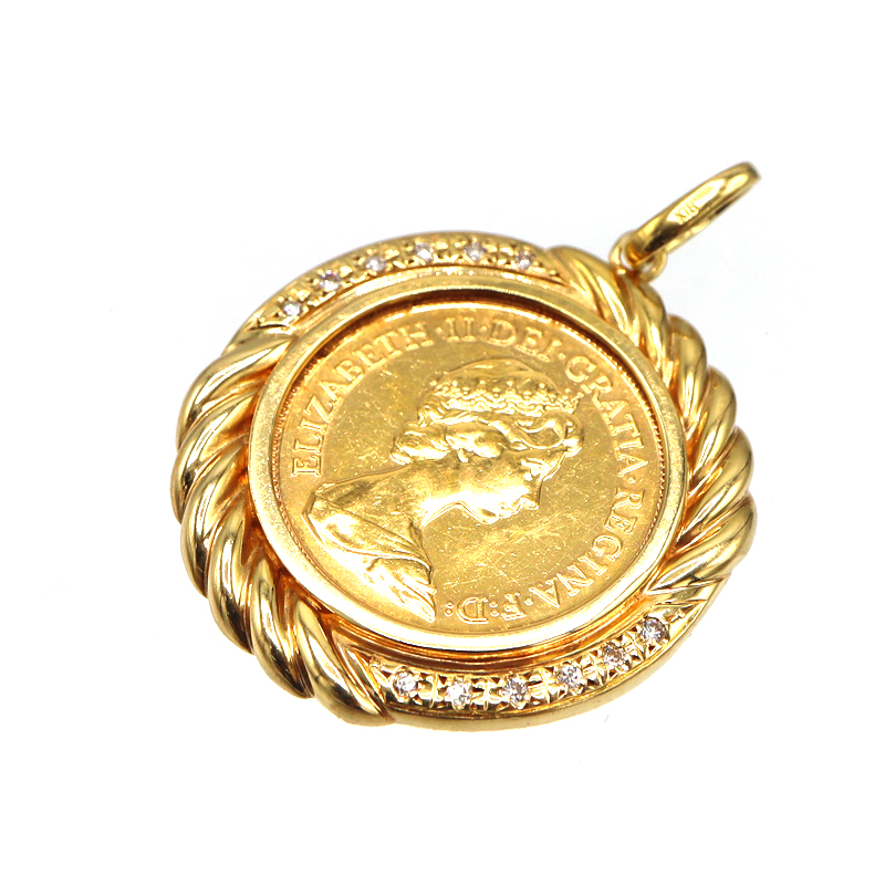 22金 18金 K22 K18 K18枠 エリザベスコイン ナポレオン ペンダントトップ ゴールド コイントップ【中古】