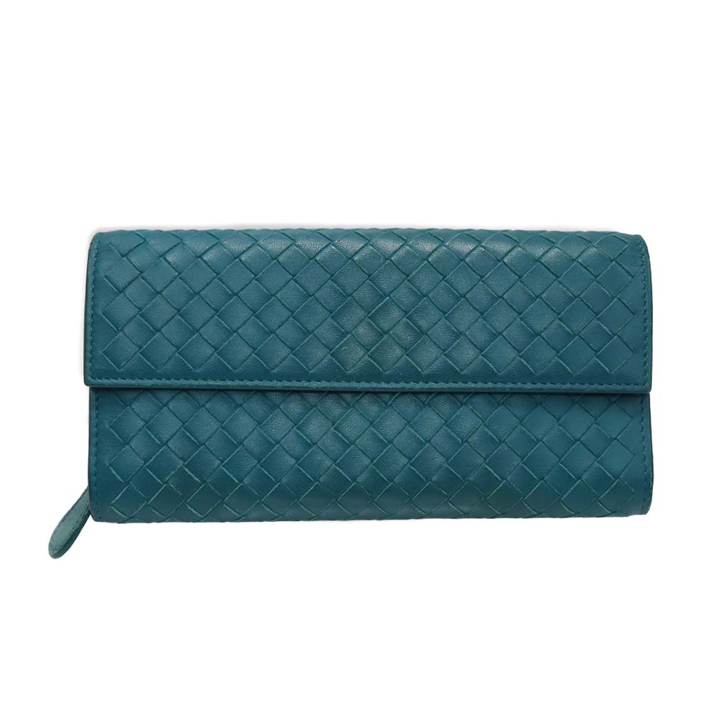ボッテガヴェネタ Bottega Veneta イントレチャート 二つ折り長財布 メンズ ブルー【中古】