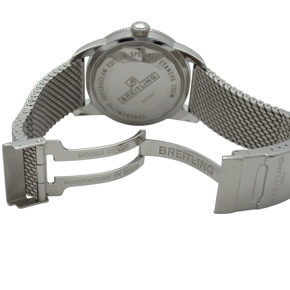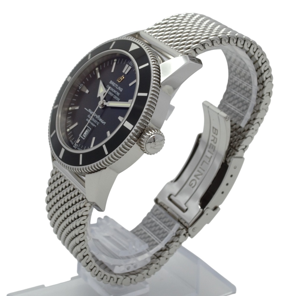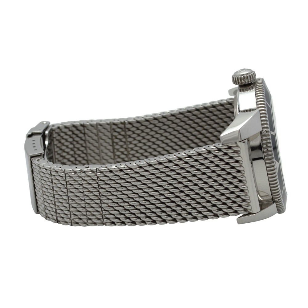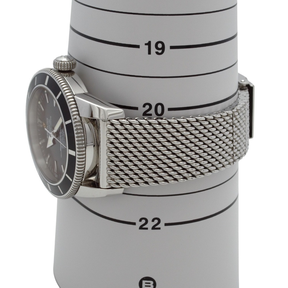 商品説明 | ブライトリングよりスーパーオーシャン ヘリテージ46が入荷しました。 ブライトリングを代表するダイバーズウォッチでもあるスーパーオーシャン。 航空時計の分野で高い評価を得ているブライトリングですが、スーパーオーシャンはその精密な時計製造技術を惜しみなく注ぎ込み、 過酷な水中環境にも耐えうる高い機能性を追求したモデルとなっています。 オーシャンクラシックと呼ばれているメッシュブレスレットもポイントです。 |