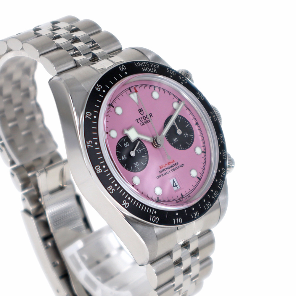 商品説明 | TUDOR【チューダー/チュードル】 79360N ブラックベイクロノ の紹介です。 チューダーからクロノグラフモデルが発売されてから50周年を迎えたことを記念して作られた「ブラックベイクロノ」。 ピンクの文字盤にブラックのインダイヤルが映える一本です。 こちらのモデルはチューダーアンバサダーのデビッドベッカムがオーナーの1人である、メジャーリーグサッカーのインテル・マイアミCFのスポンサーになったコラボモデルです。 ※尚、当サイトの販売金額より店頭での販売金額の方をお安く設定させて頂いております。予め、ご了承下さいませ。(一部セール品等除く) |