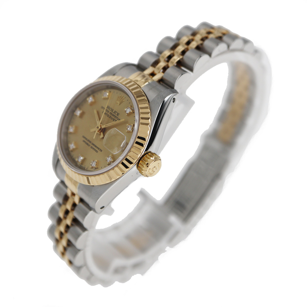 | 商品説明 | ROLEX【ロレックス】 69173G デイトジャストの紹介です。 12時に日付が瞬時に変わる「デイトジャスト機構」、強い耐久性携えた「オイスターケース」、高精度な自動巻き機構「パーペチュアル」のロレックス3大発明がつまったロレックスの歴史がぎゅっと詰まった1本です。 文字盤にはゴールド、10Pダイヤインデックスが装飾された高級感溢れるモデルです。 1984年頃から10年以上製造されていたロングセラーモデルで、定番のレディースウォッチとして親しまれています。 ※尚、当サイトの販売金額より店頭での販売金額の方をお安く設定させて頂いております。予め、ご了承下さいませ。 |
