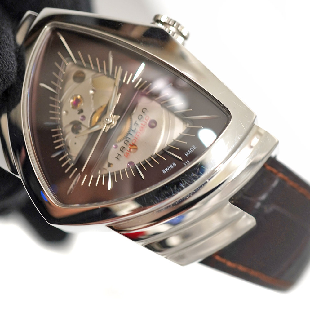 | 商品説明 | ハミルトンのベンチュラが入荷しました。 ハミルトンの中でも人気の三角形のユニークなフォルムが特徴のお時計です。 こちらはブラウンカラーで落ち着きのあるデザインと内部の精巧な動きが見えるスケルトン仕様の文字盤・裏蓋のデザインとなっております。 お探しの方はこの機会に是非いかがでしょうか。 ※尚、当サイトの販売金額より店頭での販売金額の方をお安く設定させて頂いております。予め、ご了承下さいませ。 |