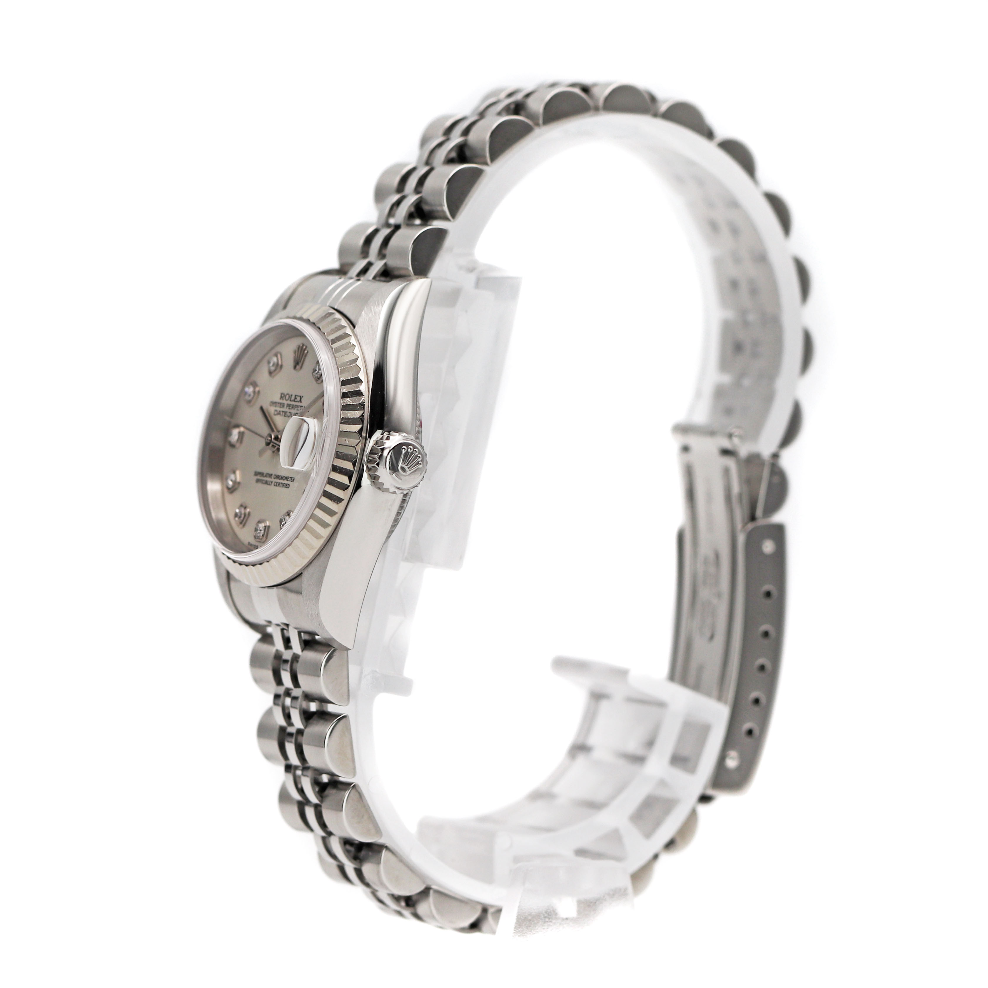 シルバーの文字盤と10ポイントダイヤ文字盤の組み合わせで非常にゴージャスな仕様の一品です。